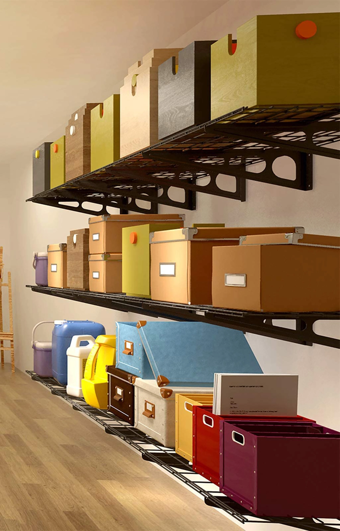 Heavy-duty 2×6 ft floating garage shelves for versatile storage, durable support, and organized space in your garage or workspace.