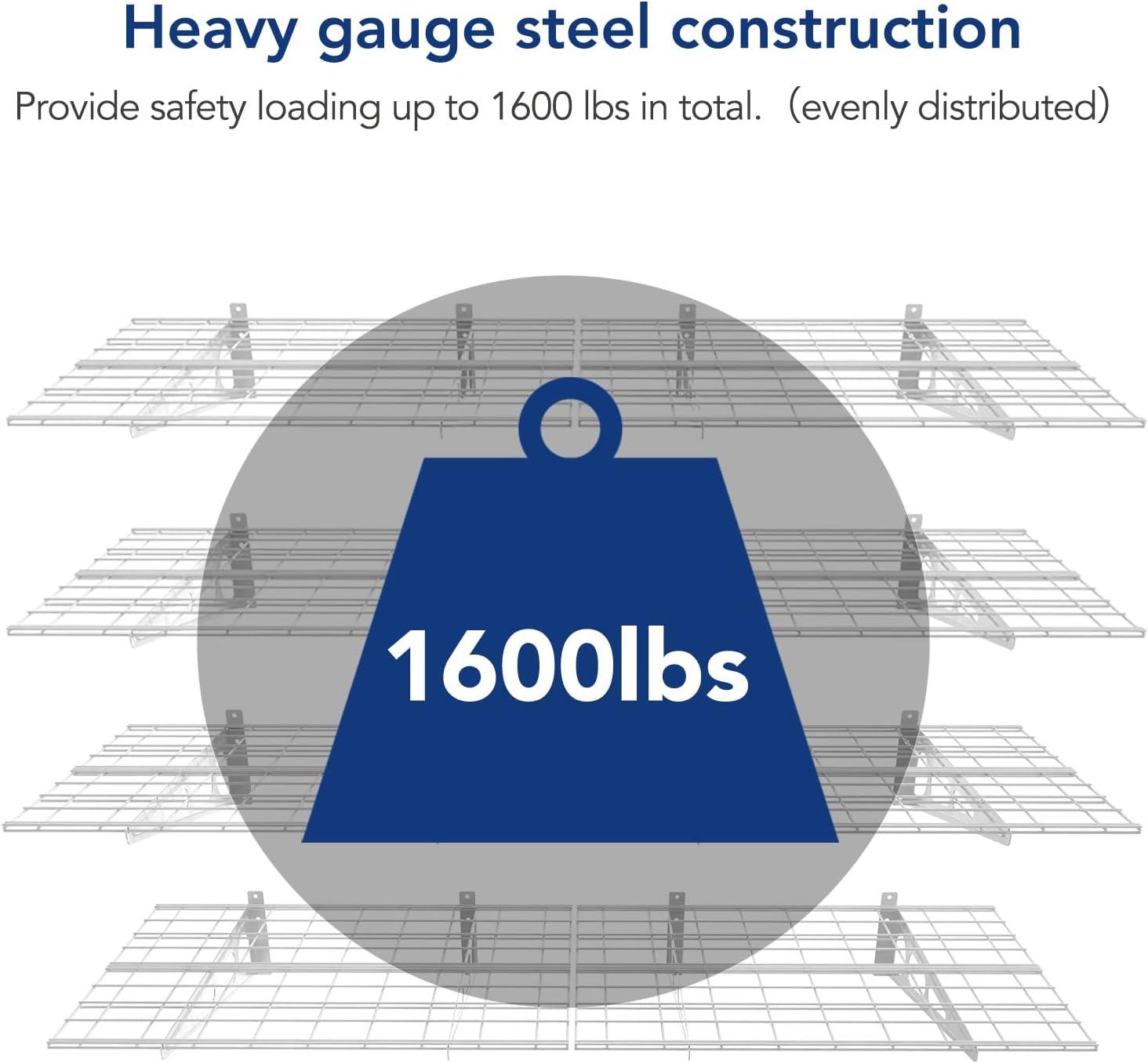 This 2×4 ft garage shelf offers ample storage space for your garage, small pantry, or kitchen. (Composition of two 1'x4' shelves per tier)