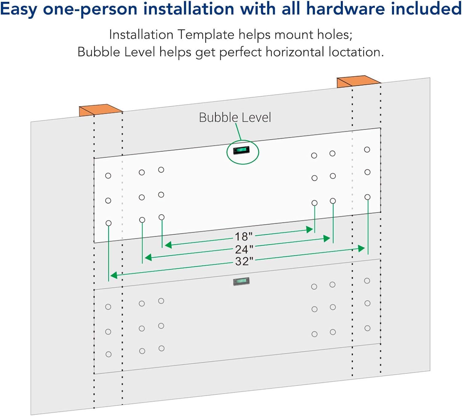 Easy Installation: Easy one-person installation with all hardware included: Installation Template helps mount holes; Bubble Level helps get perfect horizontal location.