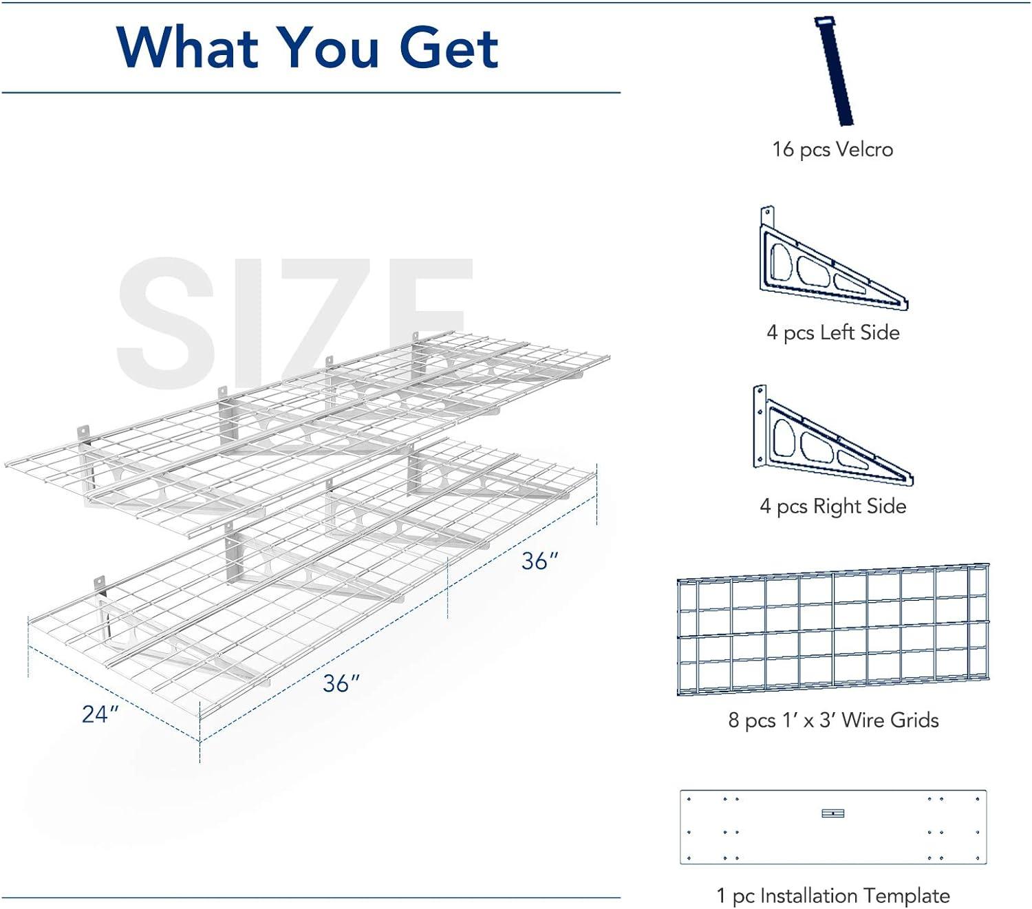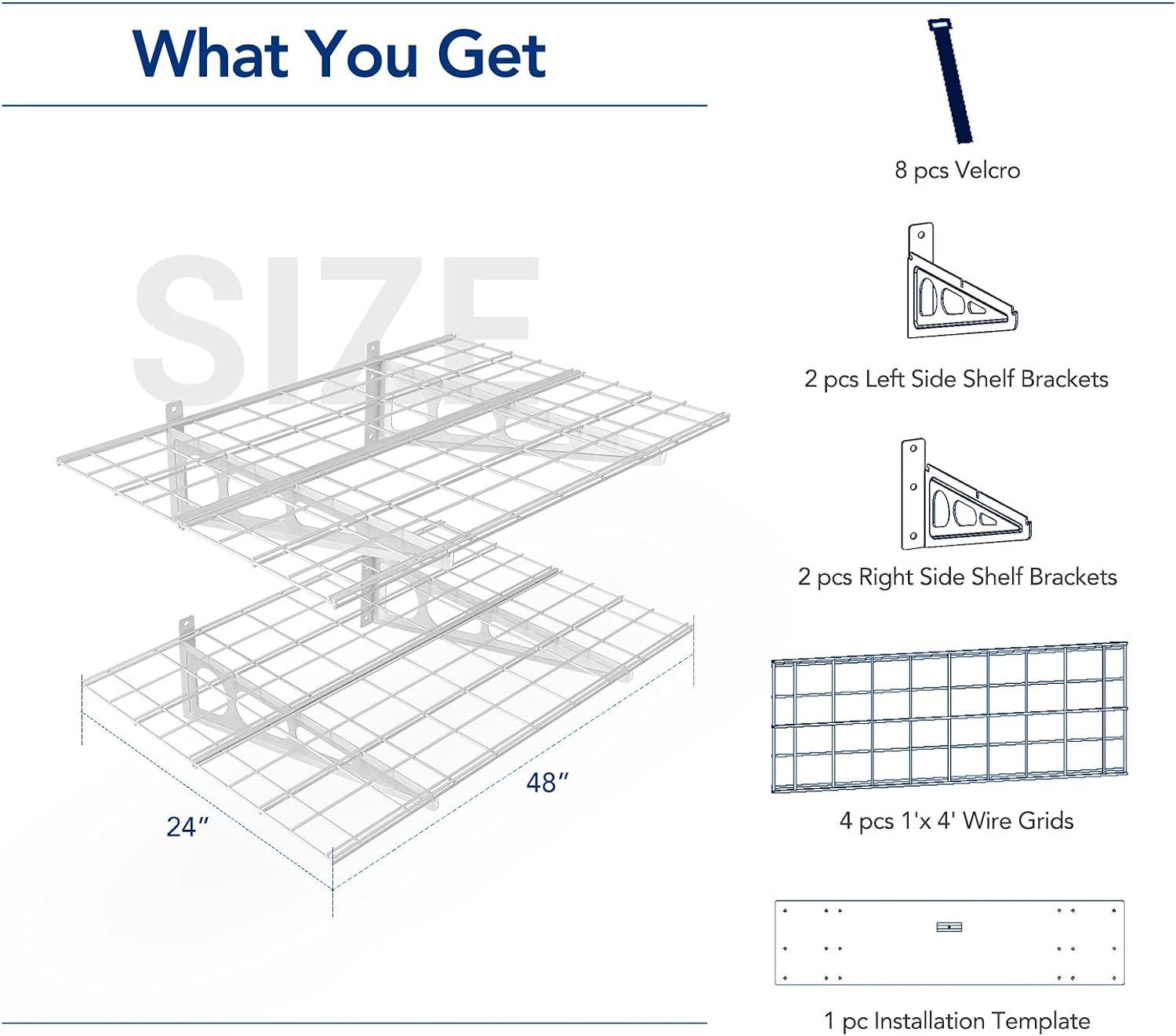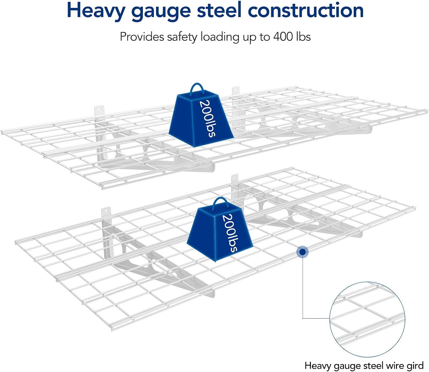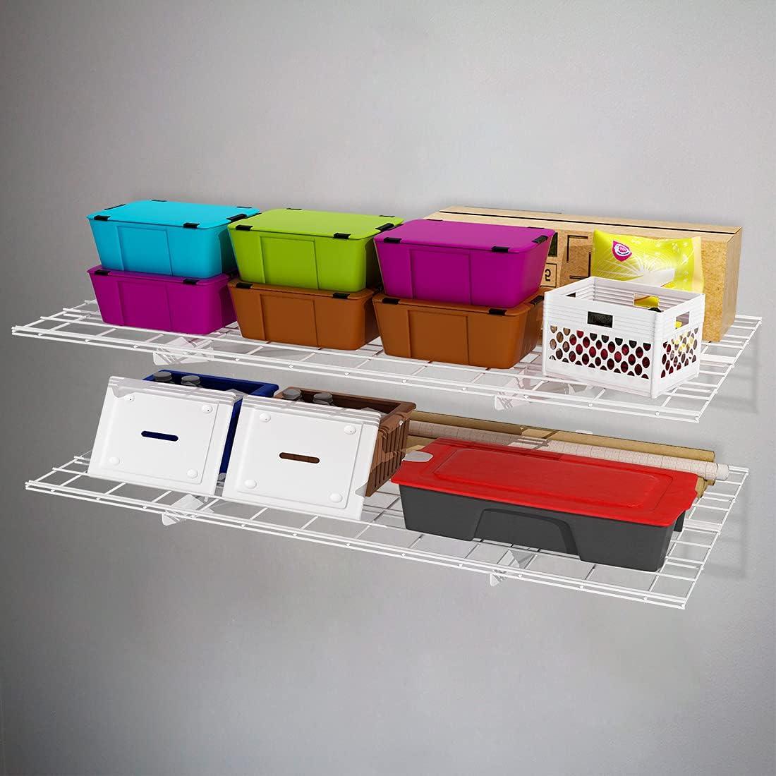 FLEXIMOUNTS 2-Pack 2x4ft 24-inch-by-48-inch Wall Shelf Garage Storage Rack Wall Mounted Floating Shelves, Black(White)