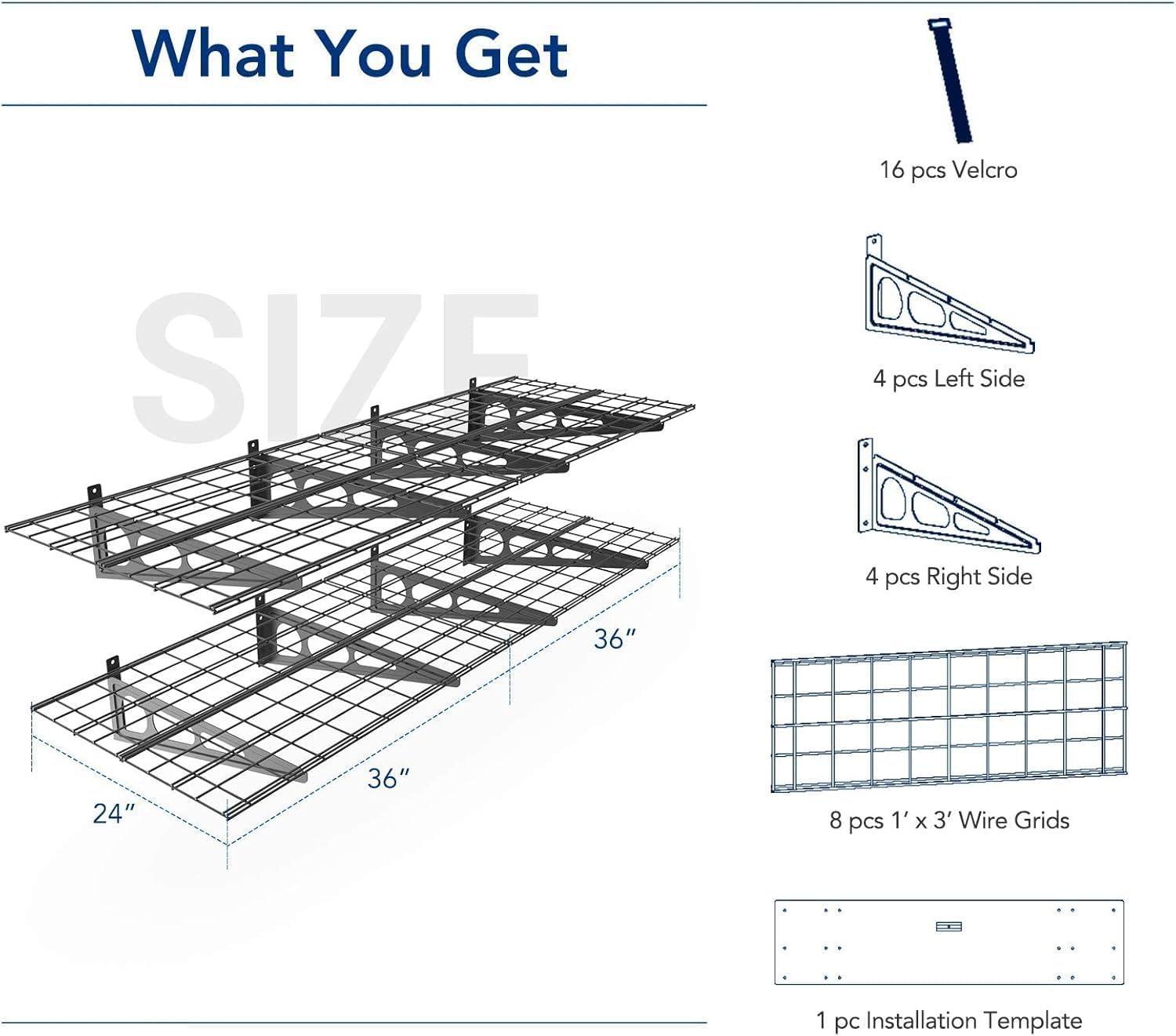 FLEXIMOUNTS 2 Pack 2x4ft Garage Storage 24×48 inch Bike Wall Shelving Rack, 440lbs Total Weight Capacity, Black(Black)
