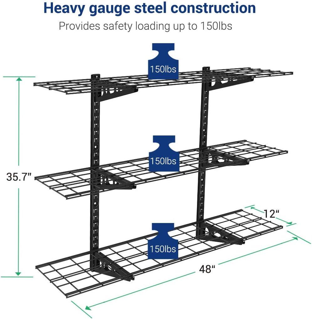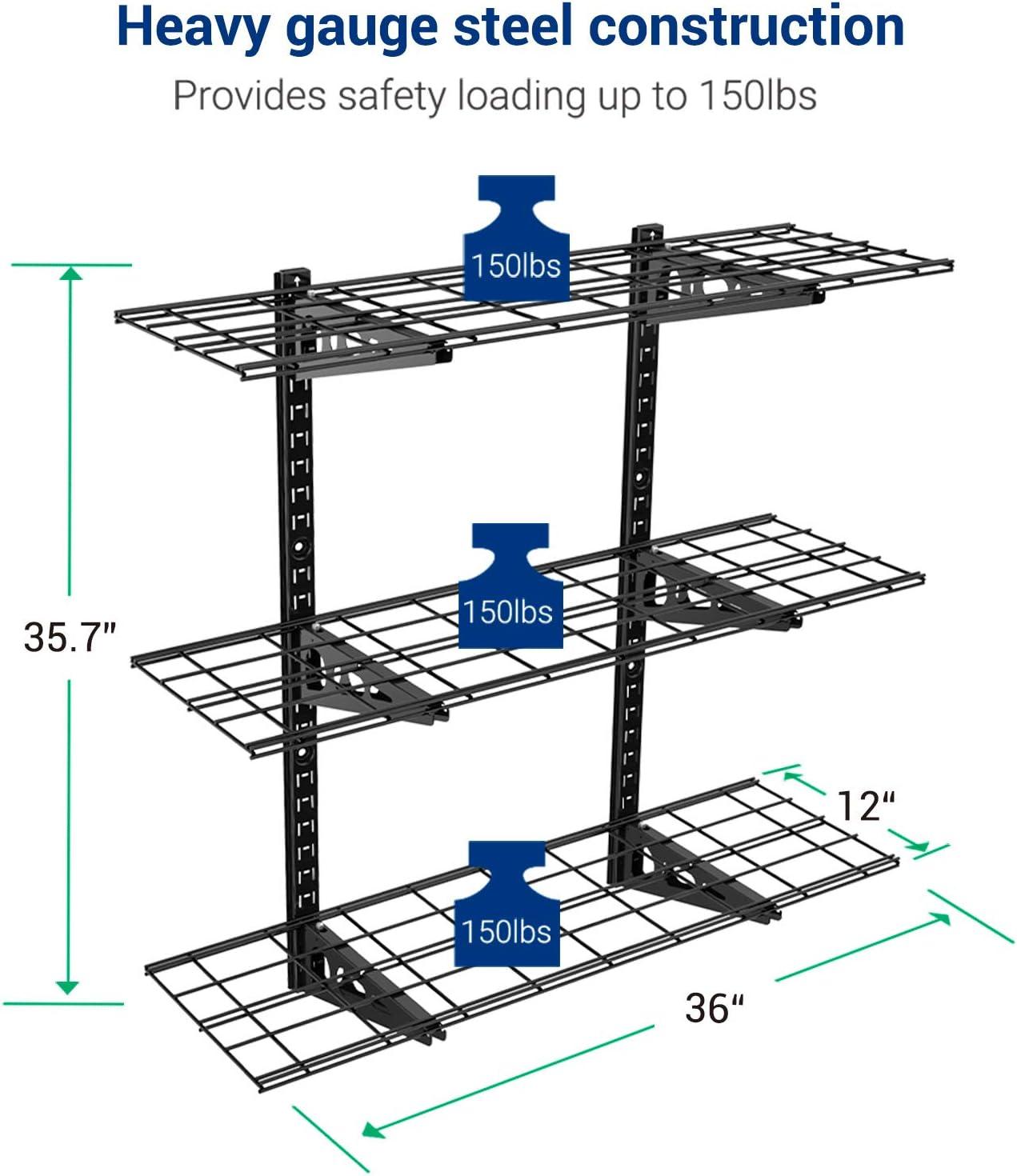 900 lbs Tested, 450 lbs Rated Weight Capacity: Our wall storage rack undergoes rigorous double load testing (900 lbs) to ensure unmatched safety and durability, supporting up to 450lbs total / 150lbs per tier for your tools and equipment.