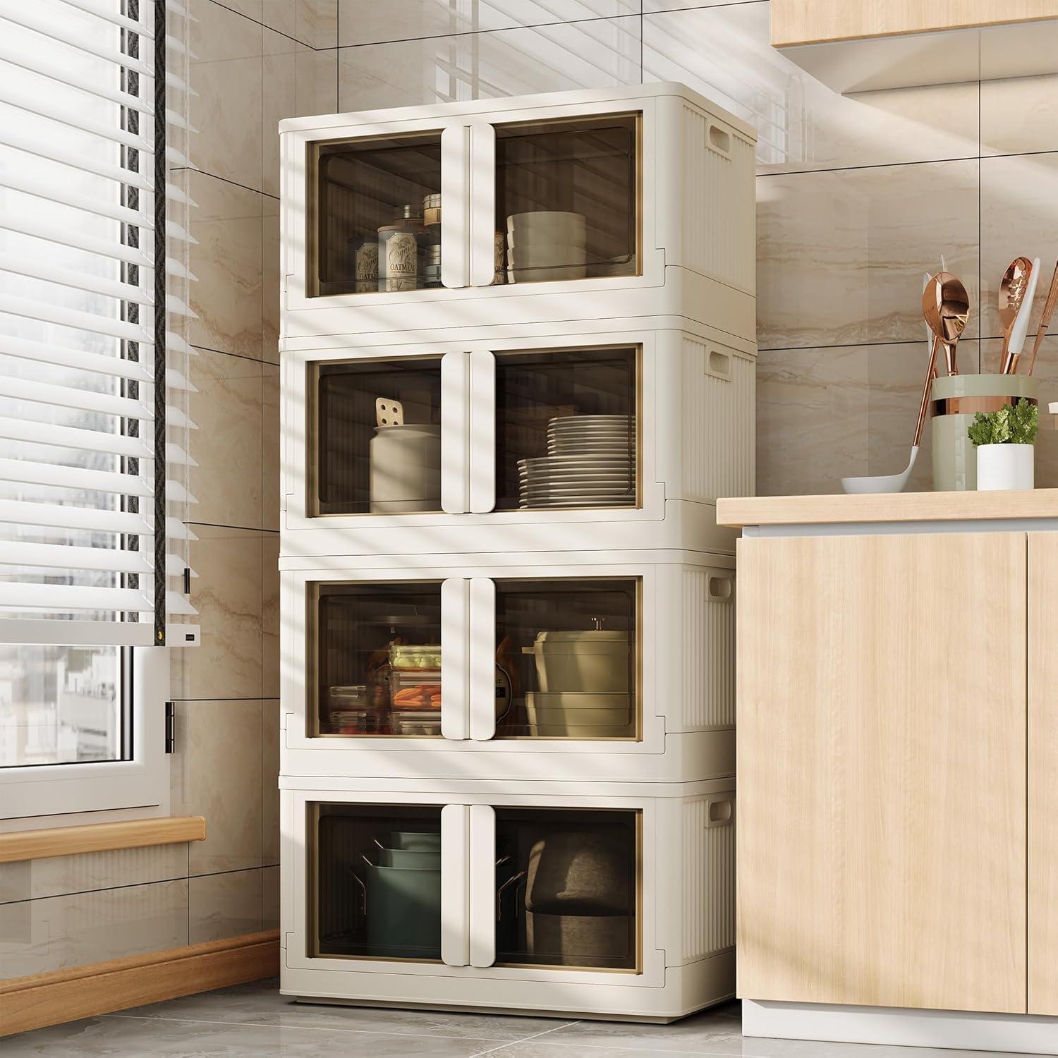 Large Storage Capacity: This folding storage box is made of high-quality polypropylene, which is strong, odorless, and durable.It can store up to 304 QT in total and hold up to 70 lbs each box.