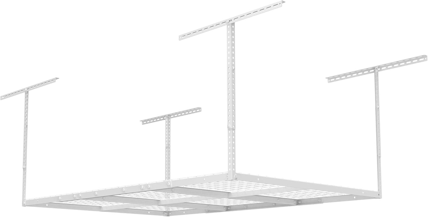 FLEXIMOUNTS 4×6 Overhead Garage Storage Adjustable Ceiling Rack 72″ Length x 48″ Width x 40″ Height, 450lbs Weight Capacity, White(White)