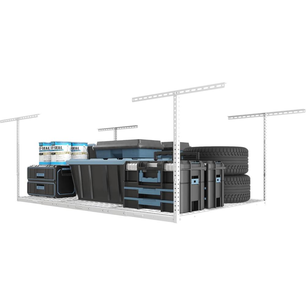 imageFLEXIMOUNTS 4x6 Overhead Garage Storage Adjustable Ceiling Rack 72quot Length x 48quot Width x 40quot Height 450lbs Weight Capacity WhiteWhite