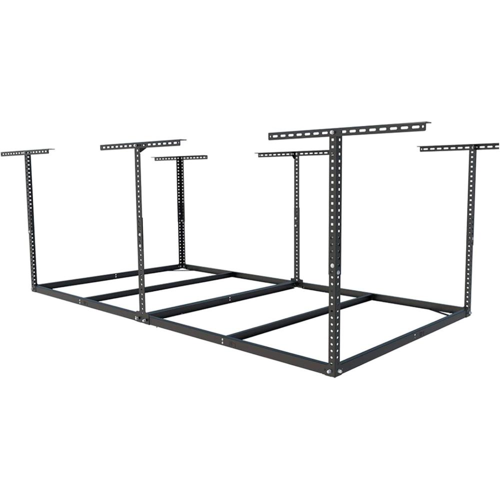 PERFECT STORAGE SOLUTION: FLEXIMOUNTS Overhead Garage Storage Rack is the perfect solution to a cluttered garage. By utilizing the unused overhead space, you can get your items up off the floor and out of the way. 22″ to 40″ceiling dropdown provides up to 105 cu. Ft. of storage. Dimensions: 96 in. L x 48 in. W x 22-40 in. H.FLeximounts hooks expand your storage capacity(Hooks sold separately)