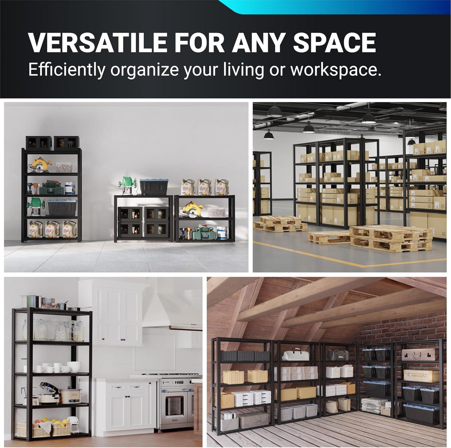 Versatile for Any Space Saving Plan: Mearsuring 48″W x 24″D x 72″H, this sturdy shelving neatly arranges items in garages, kitchen, sheds, attics and warehouses. The metal shelf is perfect for a variety of applications.