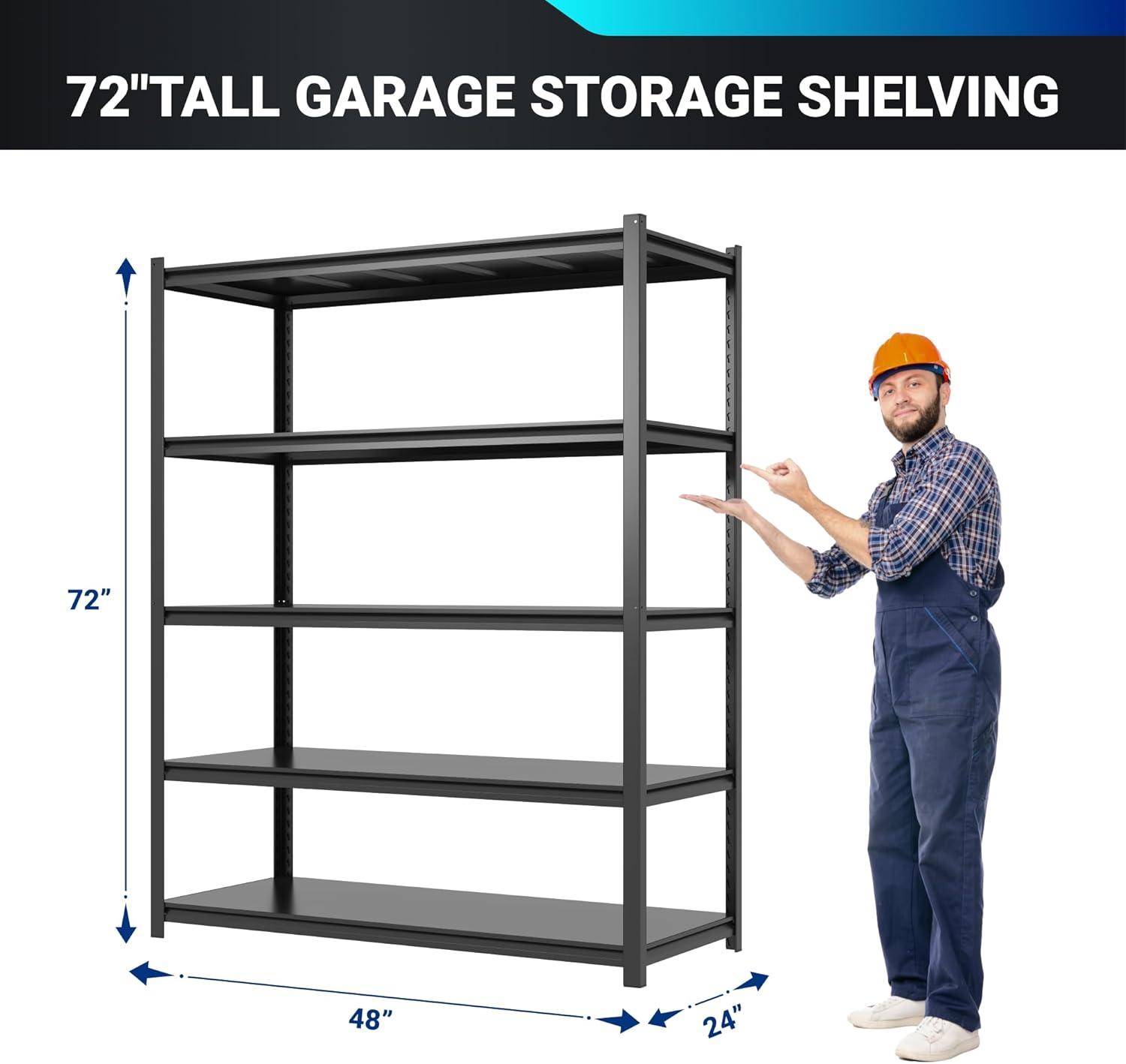 FLEXIMOUNTS Garage Shelving, Heavy Duty Shelving 2000 lbs, 5-Tier Garage Storage Shelves,Industrial Shelves for Heavy Tools and Equipment, 48″ W x 24″ D x 72″ H(1)