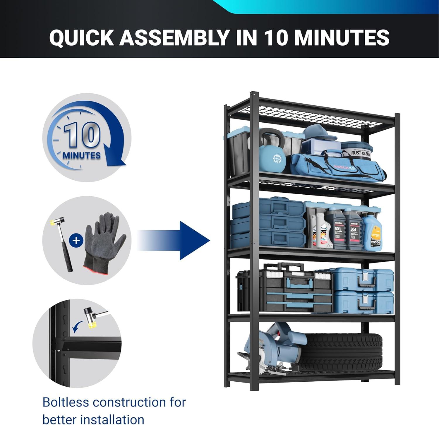 FLEXIMOUNTS Garage Shelving, Heavy Duty Shelving 2000 lbs, 5-Tier Garage Storage Shelves,Industrial Shelves for Heavy Tools and Equipment, 48″ W x 24″ D x 72″ H(4)